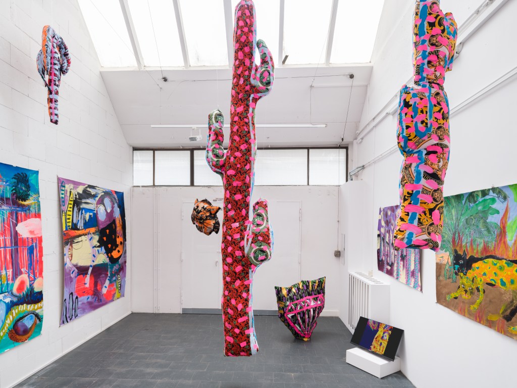 Lecture-Performance „Stretching the Notion of Painting“ at Kunstmuseum Ravensburg, 15.08.2025 (DE)Habitats. (Un)Safe Spaces, Triennale Kleinplastik, Fellbach, 24.05. – 28.09.2025 (DE)Artistic Directors and participating Artists of Kokende Liboso Eza Kokoma Te (To go ahead doesn’t mean to have arrived), collective exhibition by Laboratoire Kontempo, Kinshasa, January 2025 (DRC)Between Pixel and Pigment, Hybrid painting in post-digital times, Kunsthalle Bielefeld and Museum Marta Herford, 7.7.24 – 10.11.24 >>> Exhibtion ViewsLaFleur, The Phantom of the Operetta, steirischerherbst’24, 19.9. +21.9.2024, Graz (A)Stretching the Notion of Painting, Performance, Opening of the Exhibition „Between pixel and pigment. Hybrid painting in post-digital times“ at Marta Herford and Kunsthalle Bielefeld, 2024 (DE)Hommage SKelly aka the rare bird, the son of the wind, the machete, the son of Abla Pokou and the Virgin Mary. Bouaké, 2024 (CI)Forward flight – Flucht nach vorn, Galerie Barbara Thumm, 2024 (DE)Galerie Andréhn-Schiptjenko Paris // Amine Habki, Mukenge/Schellhammer, Linnéa Sjöberg. „Weaving, Stitching, Painting“ // Paris, 2023 (FR)Interview published by e-flux: „Shattering the Structure“, Christ Mukenge, Lydia Schellhammer, and Sorana MunsyaPerformance „Intégration“ at the Symposium „Formes, Lettres, Identité“, Académie des Beaux-Arts de Kinshasa, 2023 (DRC)Undigested Images, Galerie Barbara Thumm, 2023, Berlin, (DE)Plural Perspectives, exhibition project at Soft Power, Berlin, (DE)Undigested Images, Multimedia Exhibition, Kunststiftung Baden-Württemberg, Stuttgart (DE)Planetary skins – the Future of Demonstration – An art series by Sylvia Eckermann and Gerald Nestler, Galerie Elisabeth & Klaus Thoman, Innsbruck (AT)Pool Malebo. Mukenge/Schellhammer – Catalogue Presentation, Reading and Discussion, ifa Galerie Stuttgart (DE)Jagdfieber – A Performance in the framework of the Figuren.Theater.Festival Erlangen, (DE)Gestural living, Multifunctional paintings / moving sculpture, Brechtfestival, Augsburg 2023 (DE)Barking dogs in the head, Multimedia exhibition, Plateforme Contemporaine, Kinshasa 2022, (DRC)Fiction is never innocent, online show at New Viewings by Galerie Barbara ThummMbok’Elengi, Mukenge/Schellhammer feat. Pigeon de la Terre and Beauté Sauvage, Painting, installation and Performance in the framework of Yango Biennale de Kinshasa, (DRC)„In Conversation: Laboratoire Kontempo Embraces the Art of Conflict“ – Interview published in Contemporary&„Your exoticism is my daily bread“, experimental video feat. Harmonie Eley, Pasquien alias Choco, Maitre Claude, screening at Gloria Kino in the framework of Lumbung film by Centre d’art Waza, Documenta fifteen, Kassel „Laboratoire Kontempo: Kinzonzi Berlin„, collaborative multimedia exhibition at Haus der Statistik and Acud Galerie (DE)Pool Malebo, multimedia exhibiton at ifa-gallery Stuttart, (DE)